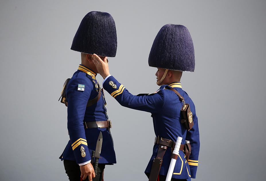 King bhumibol aduladej of thailand inspects a guard of honour of the.